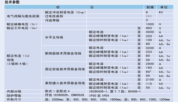 3、三級和四級水平母線系統(tǒng)其額定電流可至4000A;